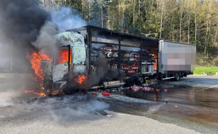 Kamion s čistícími prostředky v areálu čerpací stanice na Benešovsku pohltily plameny