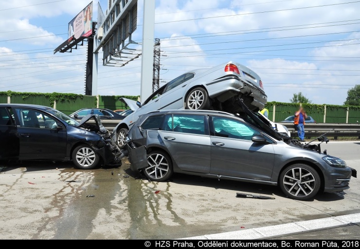 Na Pražském okruhu havarovalo hned několik vozidel. Foto: Roman Půta/HZS Praha