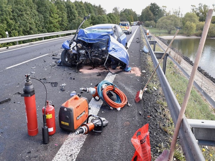 TRAGÉDIE: Starší pár zemřel ve zdemolovaném autě po střetu osobáku s nákladním vozem na Ústecku