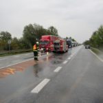 Po příjezdu jednotka hasičů provedla průzkum místa nehody, přičemž zjistila, že se u sjezdu z obchvatu srazila tři osobní vozidla s kamionem. Všichni cestující byli již mimo svá auta, nikdo v nich nezůstal zaklíněn. Nejhůře dopadlo osobní vozidlo Škoda Octavia, jehož řidič jen zázrakem neutrpěl smrtelné zranění. Skončil však v péči záchranářů, kteří jej převezli do nemocnice k podrobnému vyšetření.