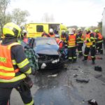 Na místo byly ihned vyslány krajským operačním střediskem dvě jednotky hasičů, a to profesionálních ze stanice Zlín a dobrovolných z Vizovic. Po příjezdu na místo velitel zásahu průzkumem zjistil, že v osobním vozidle je zaklíněný zraněný muž. Proto hasiči ihned za využití hydraulického zařízení muže vyprostili a předali do péče záchranářům. Ti vážně zraněného muže převezli do krajské nemocnice. V době zásahu všech složek IZS na místě nehody byla komunikace obousměrně uzavřena a tvořily se zde dlouhé kolony. Po odjezdu sanitního vozu se zraněným řidičem, usměrňovali hasiči v místě nehody dopravu a řidiče kyvadlově přes inkriminovanou křižovatku pouštěli. U vozidel provedli protipožární opatření.