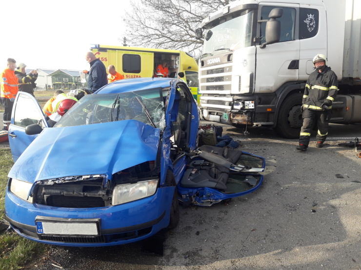 střetu uvnitř v bezvědomí, zraněná spolucestující byla mimo vozidlo. Řidič nákladního automobilu zraněn nebyl.