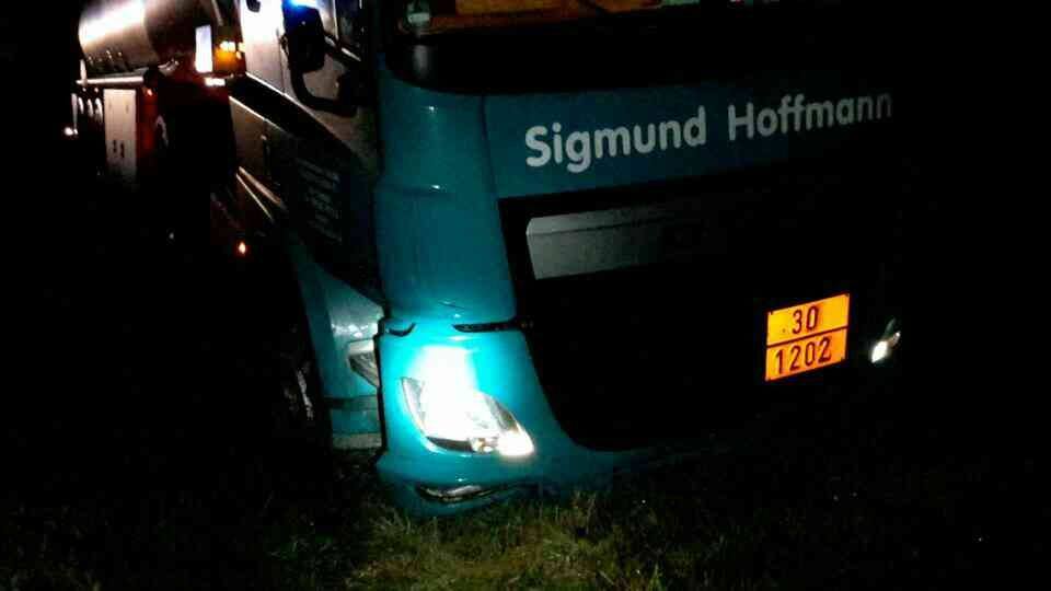 . I tato cisterna byla označená kódem nebezpečné látky. Naštěstí byla prázdná, po defektu pneumatiky skončila mimo komunikaci. K žádnému úniku z vozidla nedocházelo, po zajištění místa nehody se hasiči mohli vrátit zpět na základny.