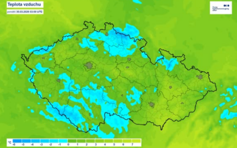ČESKO – Dnešní ranní teploty v 5:00 hodin se pohybovaly většinou od 5 do 1 °C, v Čechách místy až -2 °C. Pravděpodobně nejnižší nejnižší teplota byla zaznamenána opět na Šumavě, na Kvildě-Perle -8,1 °C. Dnešní nejvyšší teploty vystoupí na 5 až 10 °C, na horách v 1000 m bude kolem 0 °C. Zdroj: Český […]