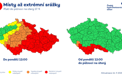 METEO: Meteorologové rozšířili své výstrahy a očekávají místy až extrémní srážky