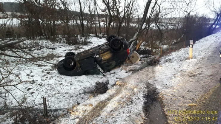 Řidič osobního auta vylétl na Chrudimsku ze silnice a narazil do stromu! Do nemocnice ho transportoval vrtulník