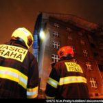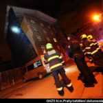 V noci vítr poškodil lešení na domě v ulici Rostislavova v pražských Nuslích, hasiči museli evakuovat cely dům do připravených evakuačních autobusů.