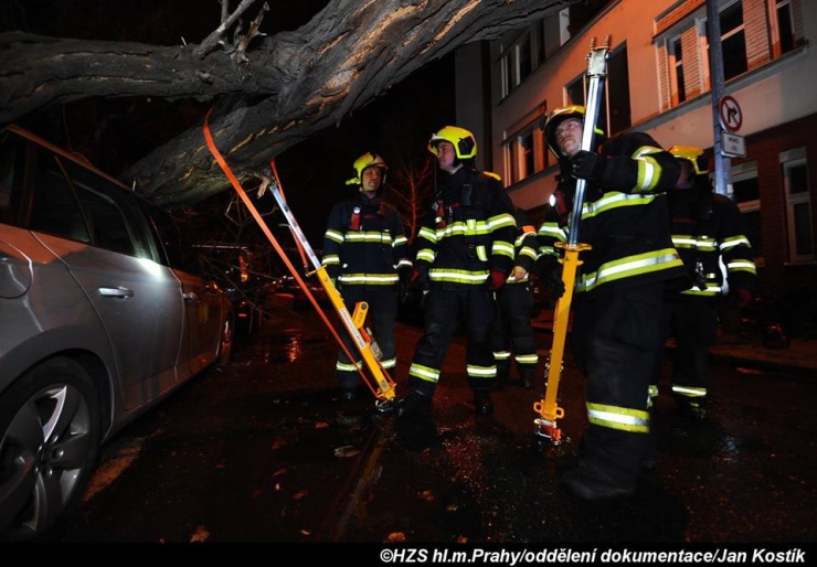 Koťátko uvízlé v koruně stromu v pražských Modřanech zachránili přivolaní hasiči
