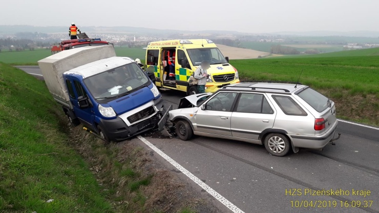 Při nehodě osobáku s dodávkou na Domažlicku se zranilo šest lidí