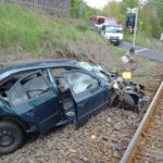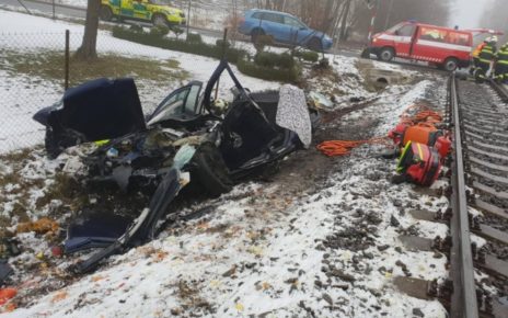Událost se stala v úterý odpoledne a bylo nutné zcela uzavřít provoz na silnici i železnici. V osobním autě jel řidič, který po nehodě zůstal ve zdemolovaném vozidle zaklíněný.
