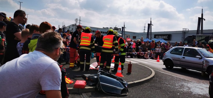 Osobní automobil poškodil autobusovou zastávku, hasiči ji museli rozebrat
