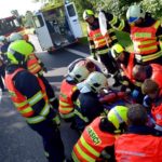 Přivolaní hasiči museli muže vyprostit s použitím hydraulických nástrojů. Posádka záchranné služba povolala pro transport zraněného vrtulník, jeho přistání zajistili hasiči na bochovském hřišti.