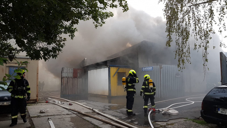 PRAHA – V Kutnohorské ulici v Praze zasahují jednotky profesionálních a dobrovolných hasičů u požáru v autodílně v průmyslovém areálu.