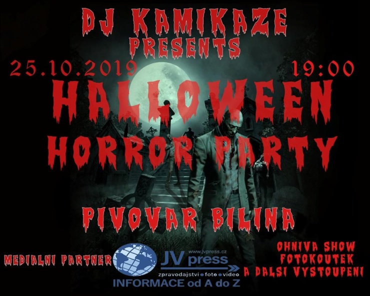 Halloween Horror Party se rozjede v pátek 25.10. od 19:00 hodin v Bílině v prostoru bývalého pivovaru. Už jen místo samotné navozuje tu správnou tajemnou atmosféru. Čeká vás večer plný hudby a světelných efektů, hororový fotokoutek, kde si budete muset krýt záda…. moderátor Petr Macoun a jeho představení Latoya Domita. Ze záhrobí nás navštíví třeba Michael Jackson, rozvíříme ohnivou show v podání Pánů z Kostomlat a další překvapení přijdou….