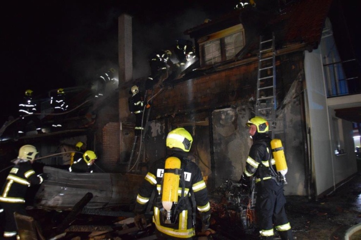 Po příjezdu k události hasiči nasadili na zdolání požáru dva vodní C proudy. Prvotní informace, že oheň přeskočil i na druhý rodinný dům, se potvrdila, a tak po likvidaci plamenného hoření museli u obou objektů rozebrat střešní krytinu, vyhledat a dohasit skrytá ohniska a pak oba domy odvětrat. Protože se majitel jedné z nemovitostí zranil při pokusu hasit požár před příjezdem jednotek, skončil v péči posádky zdravotnické záchranné služby, která jej po ošetření ponechala na místě.