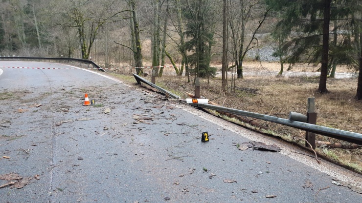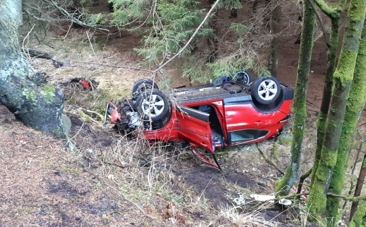 Řidič osobního automobilu nezvládl řízení, vylétl ze silnice a poté co prorazil svodidla skončil s autem na střeše. Osoba ve zdemolovaném autě utrpěla závažná zranění neslučitelná se životem.