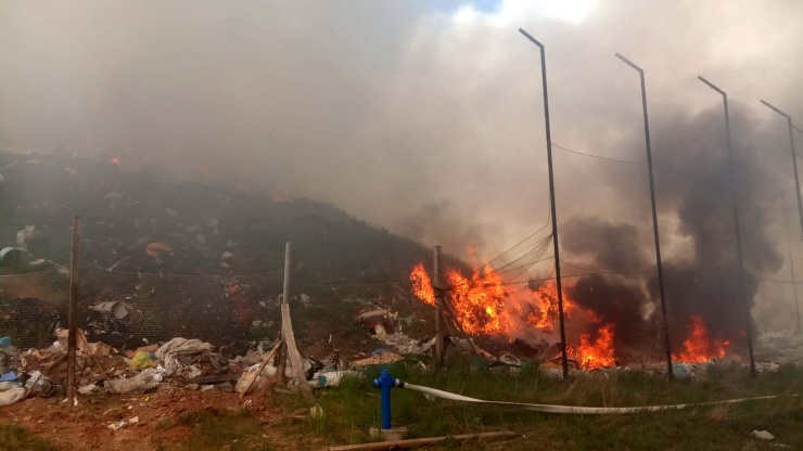 LOUNSKO – Jedenáct hasičských jednotek zasahuje u požáru na skládce komunálního odpadu Vrbička u Nepomyšli – Dětaně na Lounsku, kde hořelo na ploše 100×50 m.