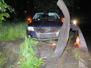 Ve Volanově narazil automobil do mostku a poškodil plot