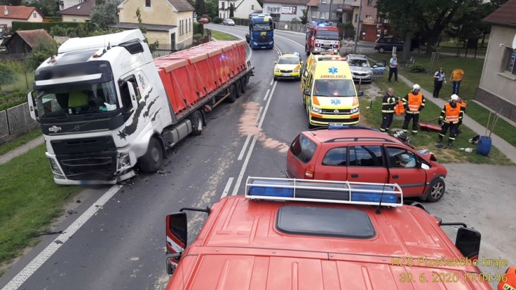 PLZEŇSKO –  V Plzeňské ul. ve Stodě se srazil kamion s osobním vozem. Jednu zraněnou osobu si převzala do péče ZZS.