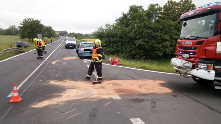 LOUNSKO – Hasičská jednotka likvidovala dnes odpoledne následky dopravní nehody dvou osobních aut u obce Kozly na Lounsku. Jedno z havarovaných aut následně skončilo mimo vozovku.