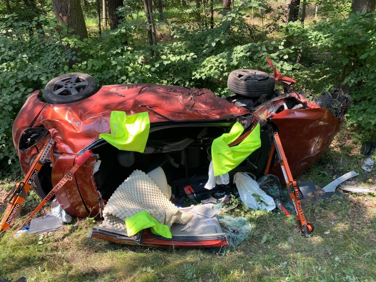 OBRAZEM: Na Karlovarsku se převrhlo vytěžené dřevo z nákladního auta zasypalo osobní vozidlo! Jeho řidiče hasiči museli vyprostit