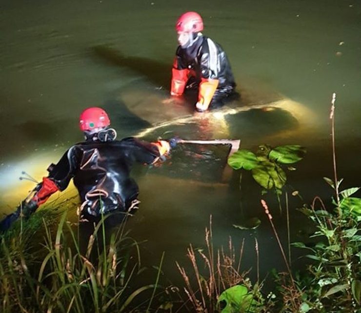 Potápěčská skupina vybavena a vystrojena do obleků se ponořila pod hladinu Labe tak, aby zajistila vozidlo a pomocí textilních úvazků na jeřáb zcela potopené auto vytáhla.