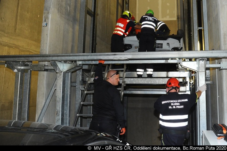 Osobu hasiči pomocí lezecké techniky vyprostili a transportovali ji do sanitního vozu ZZS HMP. Poté hasiči ve spolupráci se zaměstnanci firmy, která spravuje výtah, vyprostili i osobní automobil a to pomocí navijáku, hydraulických vaků a lezecké techniky.