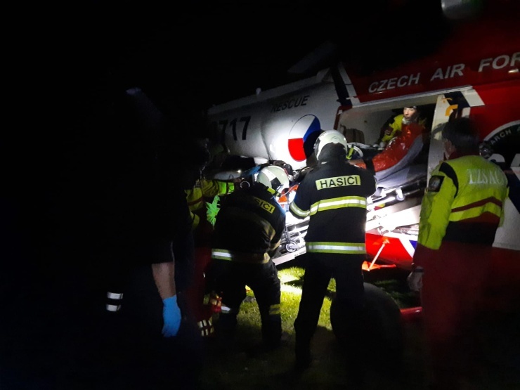 V době příjezdu hasičů byl zraněný již v péči zdravotníků. Hasiči společně se záchrannou službou zajistili bezpečný prostor pro přistání vrtulníku leteckých záchranářů. Po zajištění životních funkcí byl proveden transport zraněné osoby do vrtulníku.