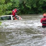 Hasiči, kteří se již během jízdy převlékli do tzv. suchých obleků, po příjezdu k zatopenému vozu během krátké chvíle obě osoby pomocí lan zachránili.