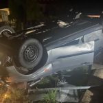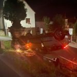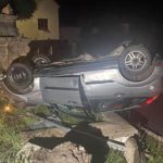 ŠTRBICE – Na střeše a přeraženou sochou skončila noční zběsilá jízda piráta silnic, který nezvládl řízení a havaroval v Štrbicích na Teplicku. Řidič z místa karambolu utekl.