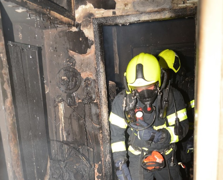 Hasiči plameny lokalizovali za 18 minut, následovalo dohašování a rozebírání ohořelých částí vybavení bytu.