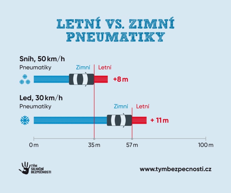 Přezout na zimní pneumatiky se určitě vyplatí. Za nízkých teplot, zhruba pod sedm stupňů, zimní pneumatiky lépe přilnou k povrchu vozovky. Brzdná dráha vozidla obutého do letních pneumatik může být až o čtvrtinu delší, na letních pneumatikách je také automobil více náchylný ke smyku.