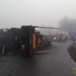 DOMAŽLICKO – U Šidlákova na Domažlicku došlo dnes dopoledne k nehodě kamionu se dřevem. Nákladní automobil skončil na boku.