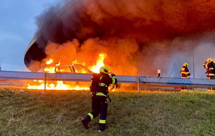 PRAHA – Dnes odpoledne zasahovala jednotka z radotínské stanice na nájezdu k Radotínskému mostu dálnice D0 u požáru osobního automobilu.