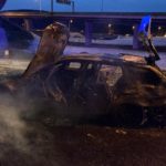 OBRAZEM: Na nájezdu k Radotínskému mostu dálnice D0 shořelo osobní auto