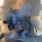 Nákladní automobil byl už při příjezdu prvních jednotek zcela zasažen plamenným hořením. Hasiči k likvidaci požáru nasadili dva vodní proudy v dýchací technice, lokalizovat se jim ho podařilo přibližně po patnácti minutách.