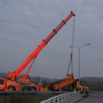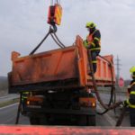 Velmi opatrná manipulace s těžkou korbou mercedesu pomocí hasičského automobilového jeřábu Demag/Terex ze stanice HZS MSK Ostrava-Zábřeh skončila úspěšně zhruba za hodinu, zasahovali zde i kolegové z nedaleké stanice HZS MSK Ostrava-Přívoz.