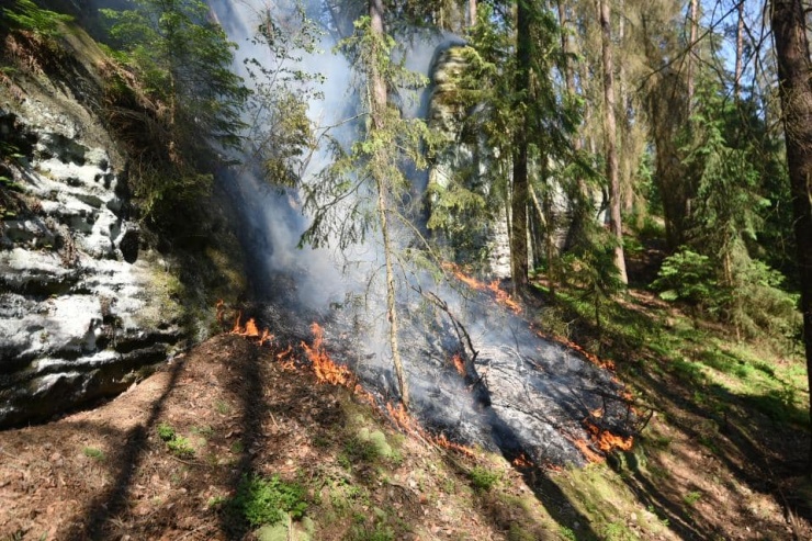 JETŘICHOVICE – Aktuálně zasahují jednotky profesionálních a dobrovolných hasičů u požáru lesa o přibližném rozsahu 4ha u Jetřichovic.