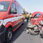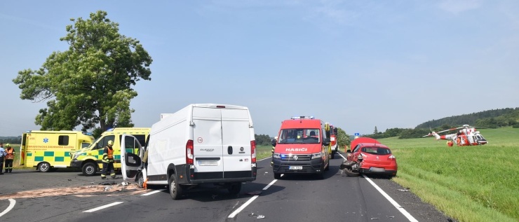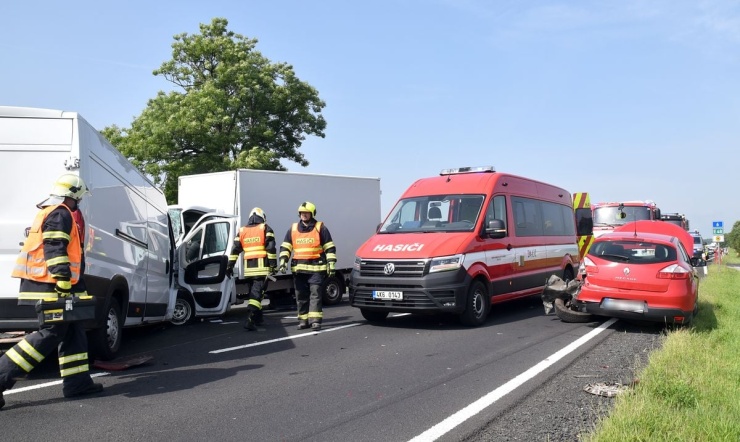 KARLOVARSKO – Vážná dopravní nehoda zcela zastavila provoz na silnici I/6 u odbočky na Čichalov na Karlovarsku. Srazilo se zde osobní auto a dvě dodávky.