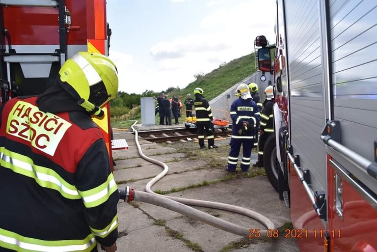 AKTUALIZUJEME OBRAZEM: Hasiči z deseti jednotek nacvičovali zásah u požáru osobního vlaku v Březenském železničním tunelu na Chomutovsku