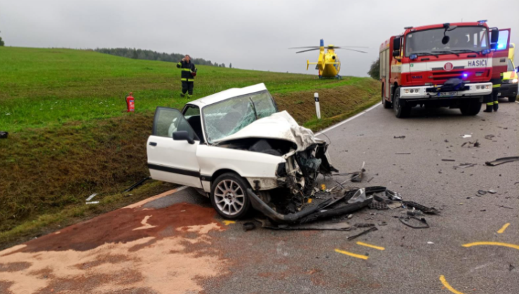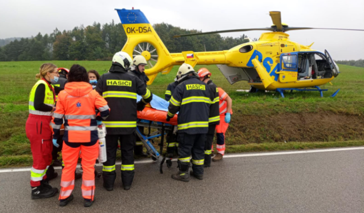 14:55 hodin: Následky vážné nehody pak dačická profesionální jednotka řešila u Volfířova, části obce Velká Lhota, kde se střetly osobní auto s nákladním. V osobním autě zůstala zaklíněna zraněná osoba. Hasiči ihned zahájili vyprošťování a během čtvrt hodiny osobu předávali zdravotníkům ZZS. Zraněná osoba byla do nemocnice transportována letecky. Současně s vyproštěním jednotka provedla zajištění místa nehody, zabezpečení proti vzniku požáru a kontrolu úniku provozních kapalin. Nákladní auto s přívěsem zůstalo po nehodě ležet mimo vozovku převrácené na bok. Jako posilová jednotka proto k nehodě vyjel vyprošťovací automobil ze stanice Jindřichův Hradec. Po úklidu komunikace pak hasiči okolo 19. hodiny zahájili vyprošťování nákladního auta z příkopu. Přibližně za půl hodiny později pak bylo auto vyproštěno a mohlo být naloženo na vůz odtahové služby.
