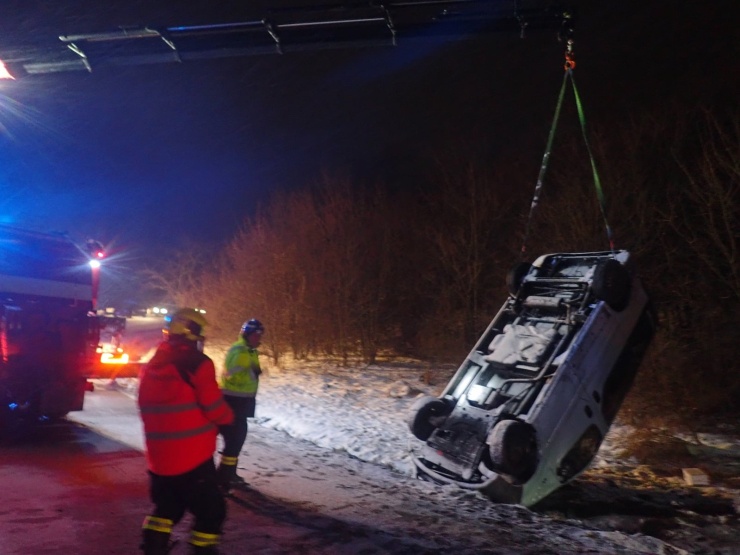 Přivolaní hasiči provedli odpojení akumulátorů obou vozidel a protipožární opatření. Tři zraněné osoby byly odvezeny sanitními vozidly do nemocnice ve Vsetíně. V současné době se čeká na příjezd vyprošťovacího automobilu hasičů. Provoz byl na silnici usměrňován v jednom jízdním pruhu. Po příjezdu vyprošťovacího automobilu byla dodávka ustavena na silnici.