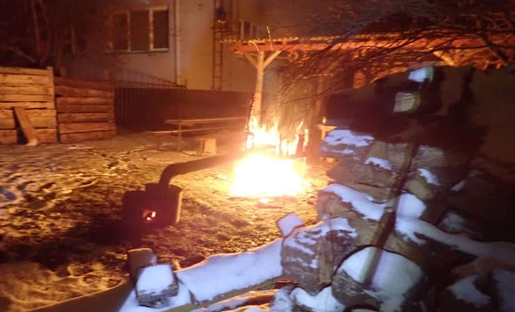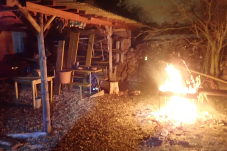 Při příjezdu na místo požáru jsme zjistili, že v blízkosti přístřešku a hospody hoří udírna. Hořící udírnu hasiči uhasili jedním vysokotlakým proudem vody. Majitel udírny nebyl přítomen.