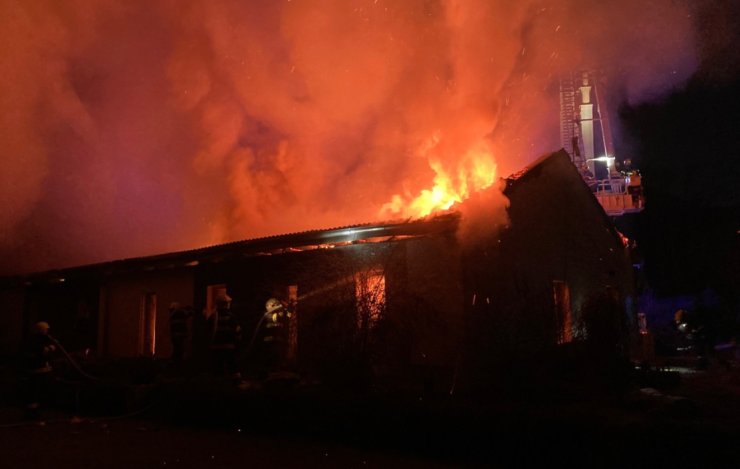 Při požáru vznikla škoda za 5 milionů korun! Hořící dům včas a bezpečně opustili čtyři lidé. Na místě stále zasahují hasičské jednotky.