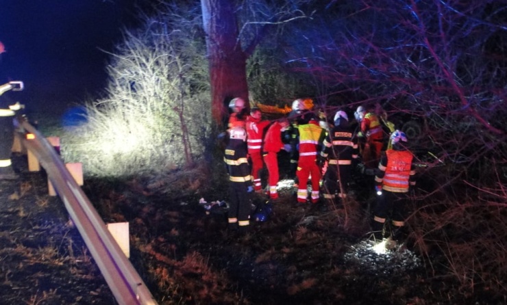 KRÁLOVÉHRADECKÝ KRAJ – U tragické dopravní nehody zasahovaly dnes v brzkých ranních hodinách všechny složky Integrovaného záchranného systému ČR. Na silnici č. 11 u Obědovic, v katastru obce Káranice, havaroval osobní automobil, který se ocitl mimo komunikaci v náletových dřevinách převrácený na střechu.