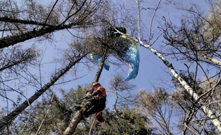 PŘEROVSKO – Hasiči Olomouckého kraje dnes zachránili paraglidistu z výšky asi 15 metrů, který uvíznul v koruně stromu poblíž Milenova na Přerovsku.