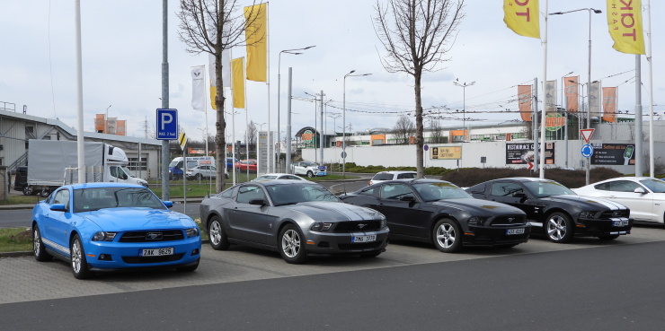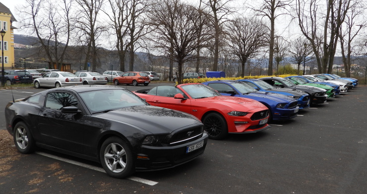 I přes chladné aprílové počasí se zde nakonec sjelo tucet Mustangů 5. i 6. generací. Ve verzích fastback i convertible.