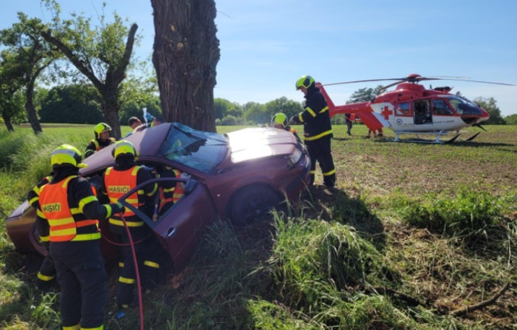 Při příjezdu hasičů na místo nehody už byly dvě zraněné osoby odvezeny na ošetření, třetí museli hasiči z havarovaného auta opatrně vyprostit – pomocí hydraulických nástrojů. Na páteřní desce ji předali posádce vrtulníku LZS.