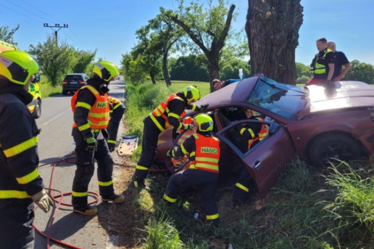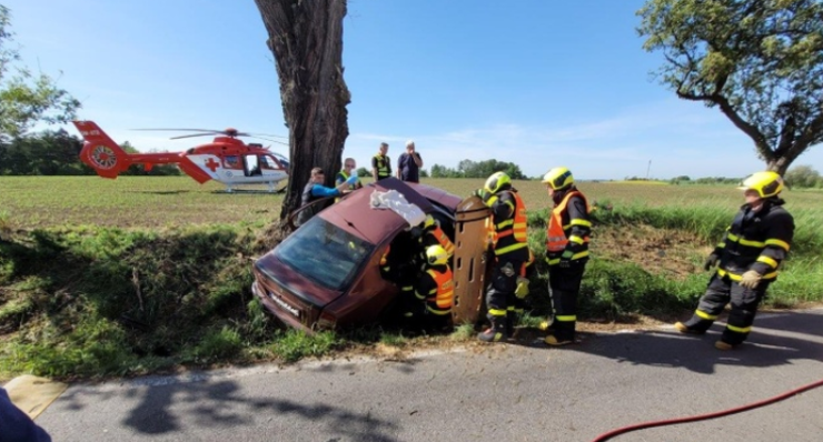 Při příjezdu hasičů na místo nehody už byly dvě zraněné osoby odvezeny na ošetření, třetí museli hasiči z havarovaného auta opatrně vyprostit – pomocí hydraulických nástrojů. Na páteřní desce ji předali posádce vrtulníku LZS.