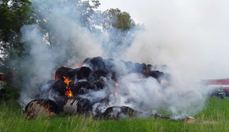 SOBĚCHLEBY – Čtyři jednotky hasičů zasahují od 17.15 hodin u požáru stohu balíků sena u obce Soběchleby na Teplicku.